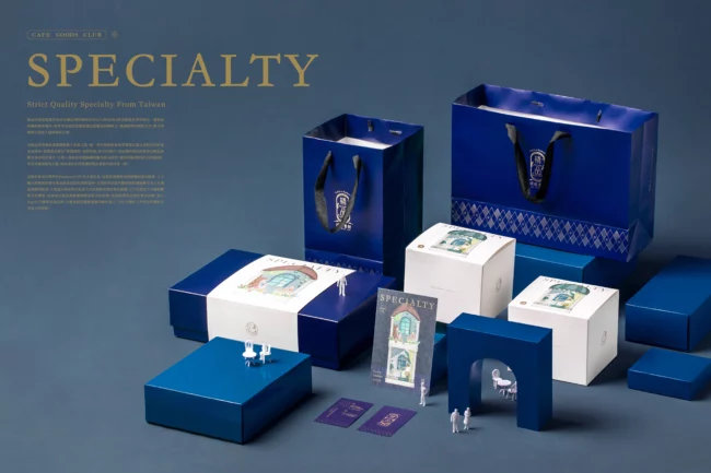 在品牌視覺設定則以質感與在地的風格呈現,標誌設計以鯨魚、台灣、勳章形式設計,傳遞出品牌希望呈現認證勳章與明確、好辨識的鯨魚意象;而文字「精品」以偏修長的比例設計,在部分筆畫收尾做修飾,讓二字給人的感受更加細緻;「河堤會館」四字則為「精品」這品牌的實體空間之一,層級上應隸屬第二階,在文字設計上與「精品」的位階得有所區隔,讓四字的給人的感覺是附屬,但又不失和諧,所以文字比例上依舊保持修長的比例,但在自尾處理則以比較圓滑的方式做結尾,不多做變化,也不搶過主階的位置;圖形設計中的「米」字符號取自標準字「精品」中的「精」的線條,以像是發光的造型,為整個標誌做點綴;下方以海浪圖形與鯨魚做呼應,讓鯨魚如同在海上一般,對稱與位置也同時讓標誌整體更加穩定。