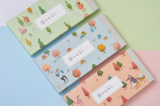 青鳥旅行肉鬆蛋捲有著三種不同口味,由口味延伸到包裝以青鳥的故事為藍本發想,以顏色與插畫區分三種口味,希望在包裝中著重故事,讓整個品牌概念更加完整。包裝設計在結構面,建立在一個12入單盒的基礎規模上,從而衍生出2入禮盒及紙袋,除了注重質感的呈現、基本的保護功能及倉儲空間考量外,更加強應用性,讓整體包裝可以達到彈性範圍的向上及向下兼容。